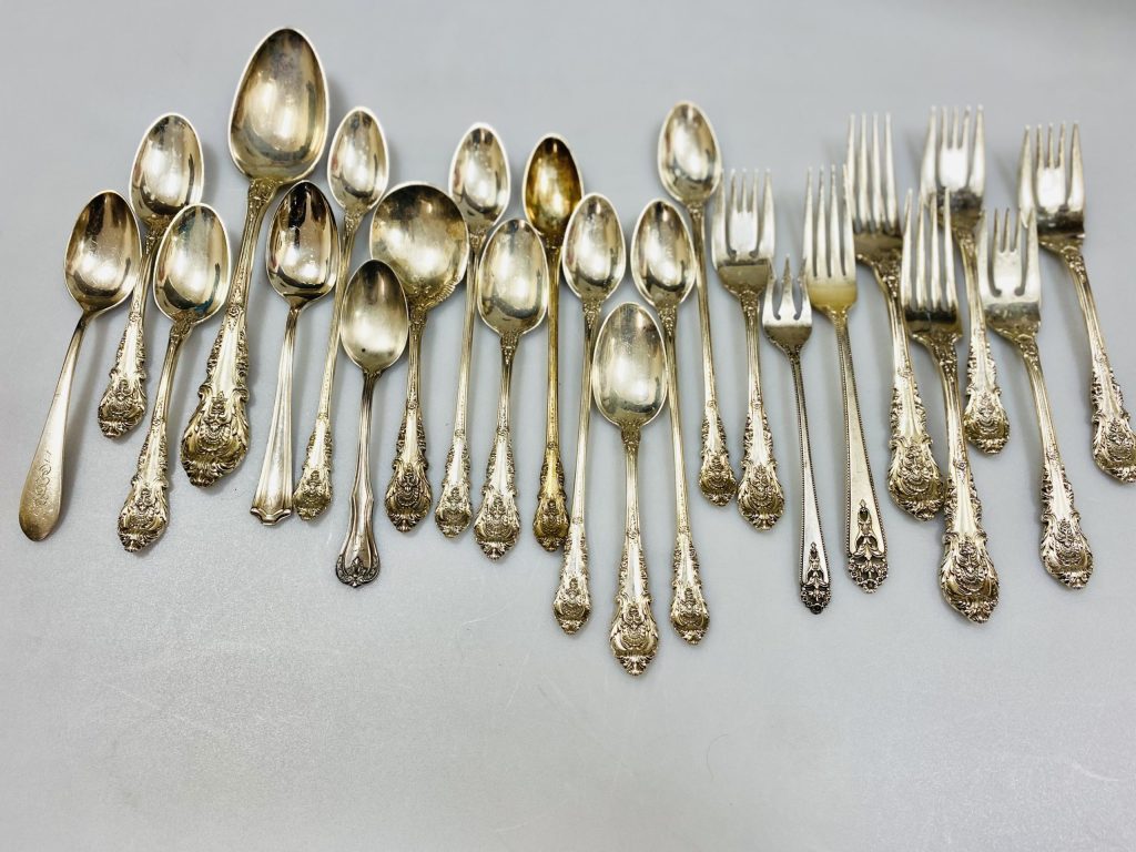 We accept silver in various forms, including old sterling silver, silver tea sets, silver coins, silver jewelry, silver watches, silver dinner sets, silver plates or any other form of silver.